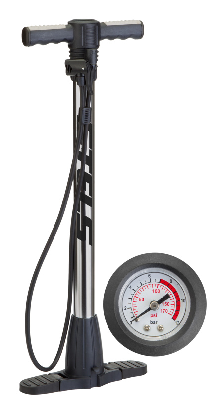 Насос ZF-004-1 ручной стационарный, с манометром, алюминиевый серебристый